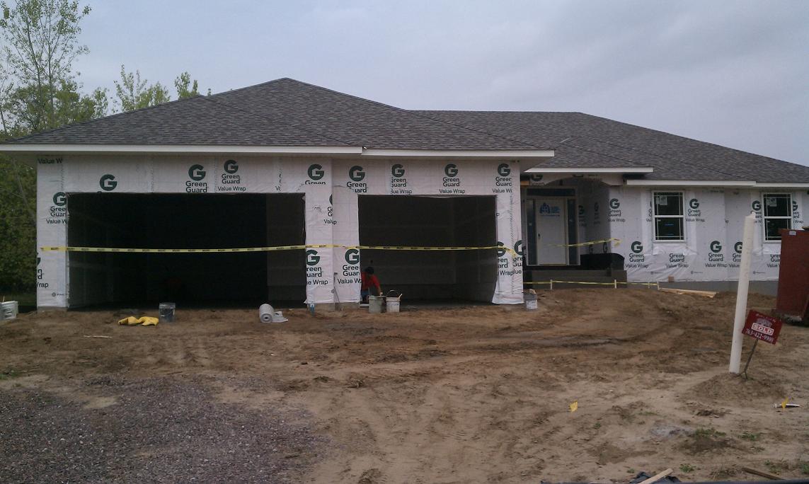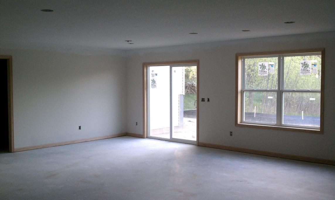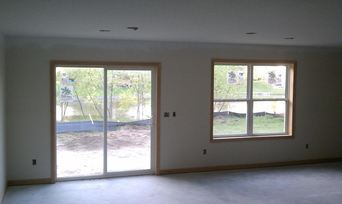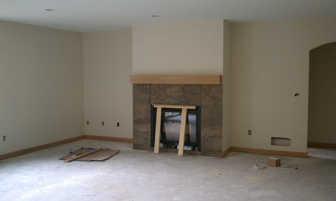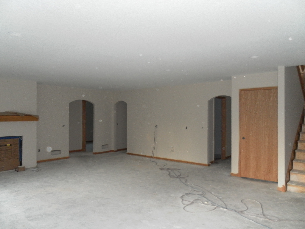 Update for this week. The garage floor and front porch cement have been poured. Ceilings have been painted, initial coat of paint on the walls as well. The has all the doors hung, and is 95% done with the trim. The main level has about 80% of the doors hung, and about 30% of the trim installed. I'm assuming they'll finish up the trim work tomorrow, as well as take delivery of all the cabinets