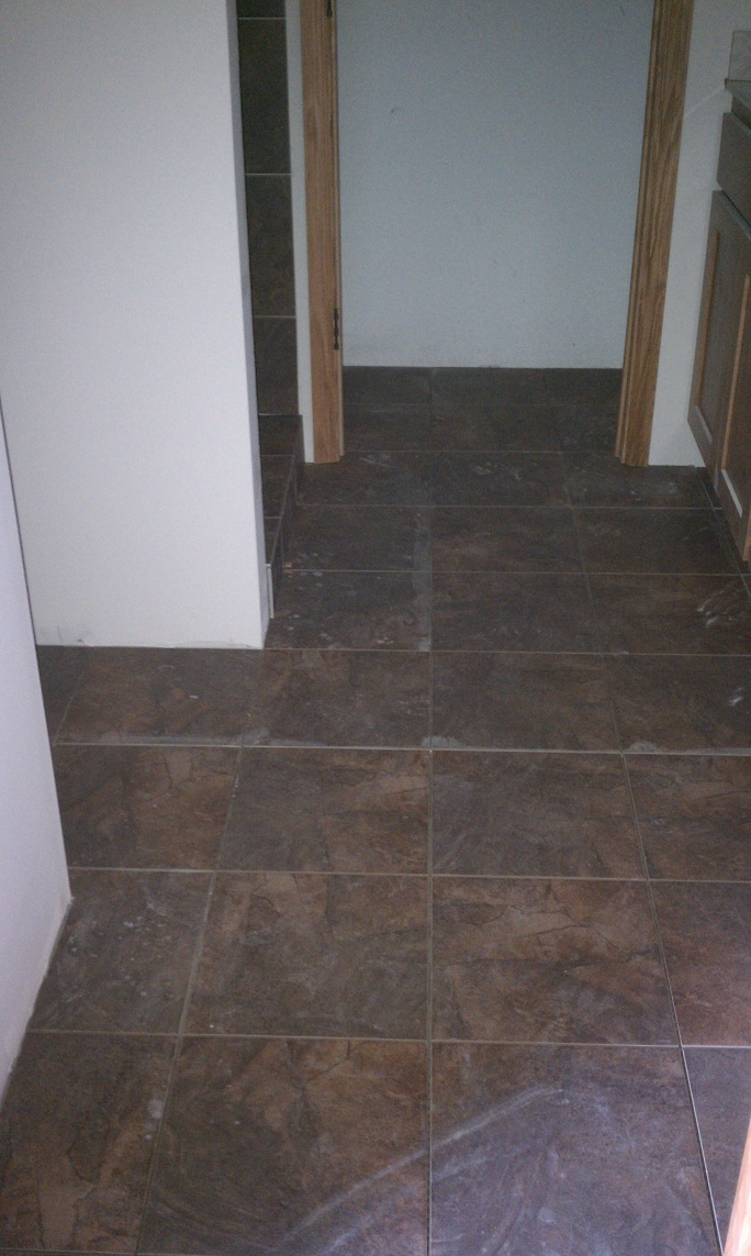 - Upstairs spare bath, downstairs bath, and garage entrance/mudroom/laundry room all have vinyl flooring installed.