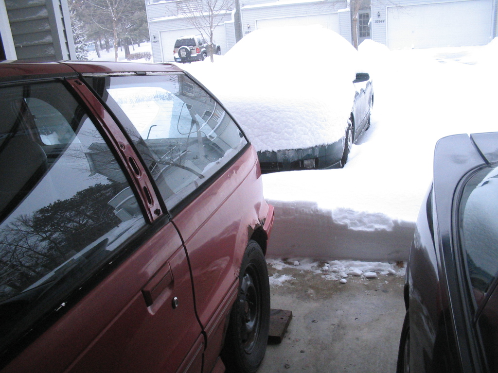 The mazda was nice and clean in the garage but I had to shovel out the Prisim today. And shovel off the foot of snow covering it. I'm just happy it's half way warm outside and not fuck'n freezing.