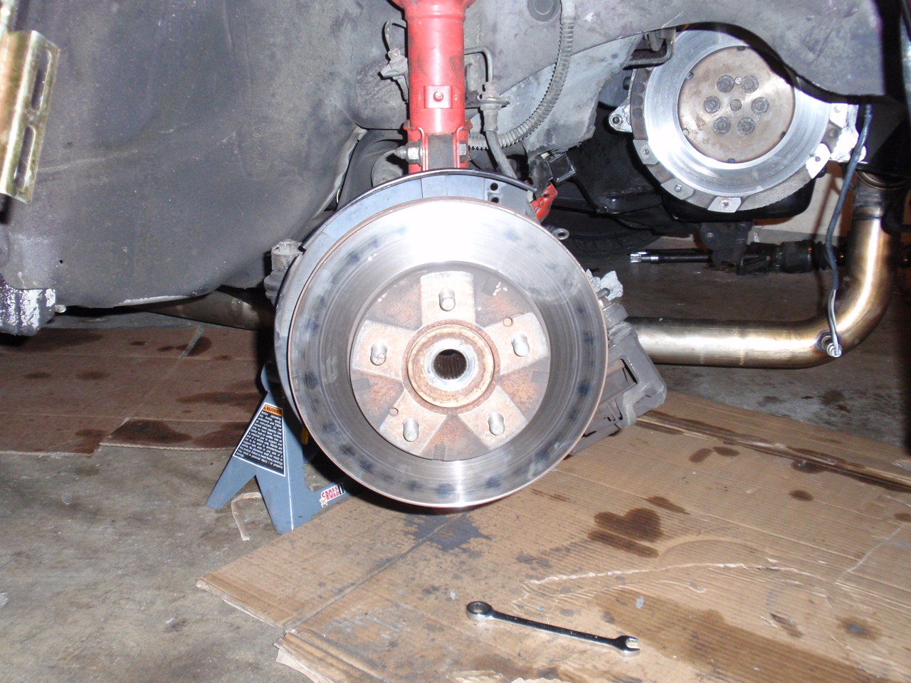 Looks like a nice setup, but I would definitely be getting longer bolts for those calipers and brackets. Also, it seems like there's alot of wasted space on that rotor. Is there any kind of upgraded caliper for this setup that takes advantage of the space between the hub area and the inner edge of the pad?