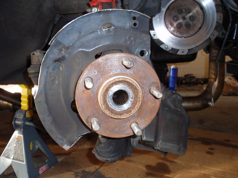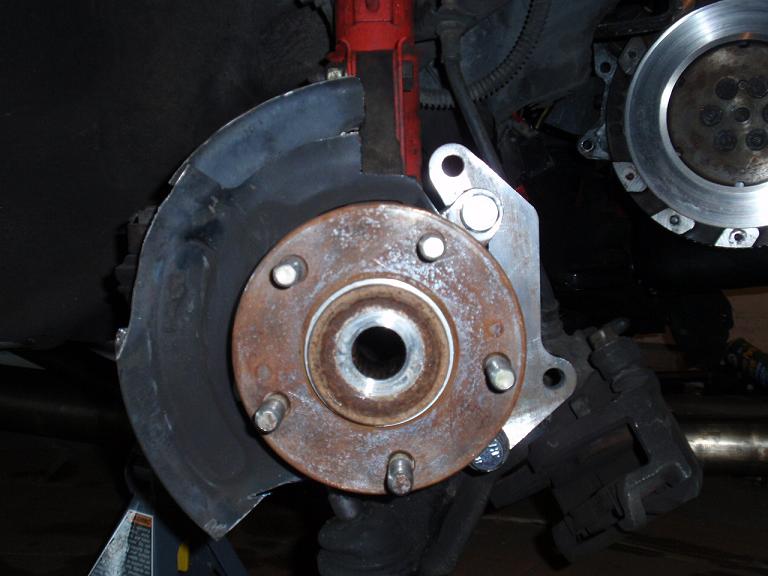 Got to come home for a day. Here's what I've done so far. Had to modify the brake dust shield to accommodate the larger rotor.
