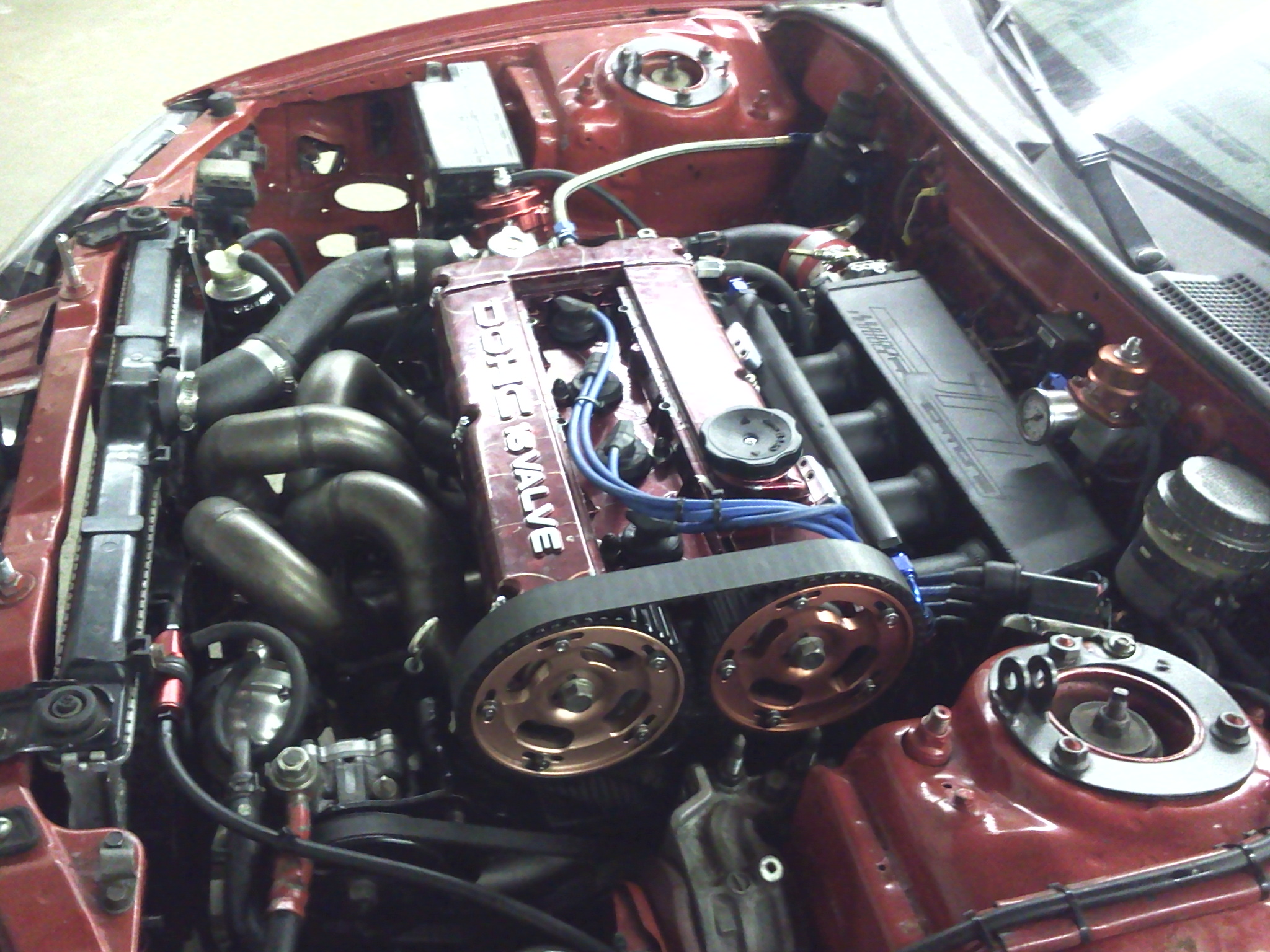 well the crank sensor was bolted on backwards the guy who installed is a jackass. wait i did all that... anyways car fired right up and everything looked good after 20min i shut the car off and looked under it for the 10th time and there was somr oil. it looked like the back of the block because it was driping between block and trans by the slave. so last night i pulled the trans. looked like the oil galley bolt was leaking. so i put rtv on it and reinstalled everything. will give it another try today or tomorrow