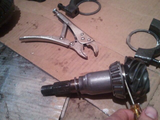 Well this is what I got so far. Confused as to which is the shim. I'm guessing it's the one my finger is pointed at because the one i'm pointing out with the screwdriver looks to be the same on both shafts and non removable.