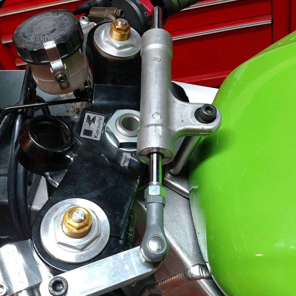 Behold, a 2006 Suzuki 600 GSXR steering damper adapted to a 2003 Kawi Ninja ZX6RR. I'll swap it out to 5W oil tomorrow. It "should" hold as I really beat the piss out of it on the stands and it held just fine.