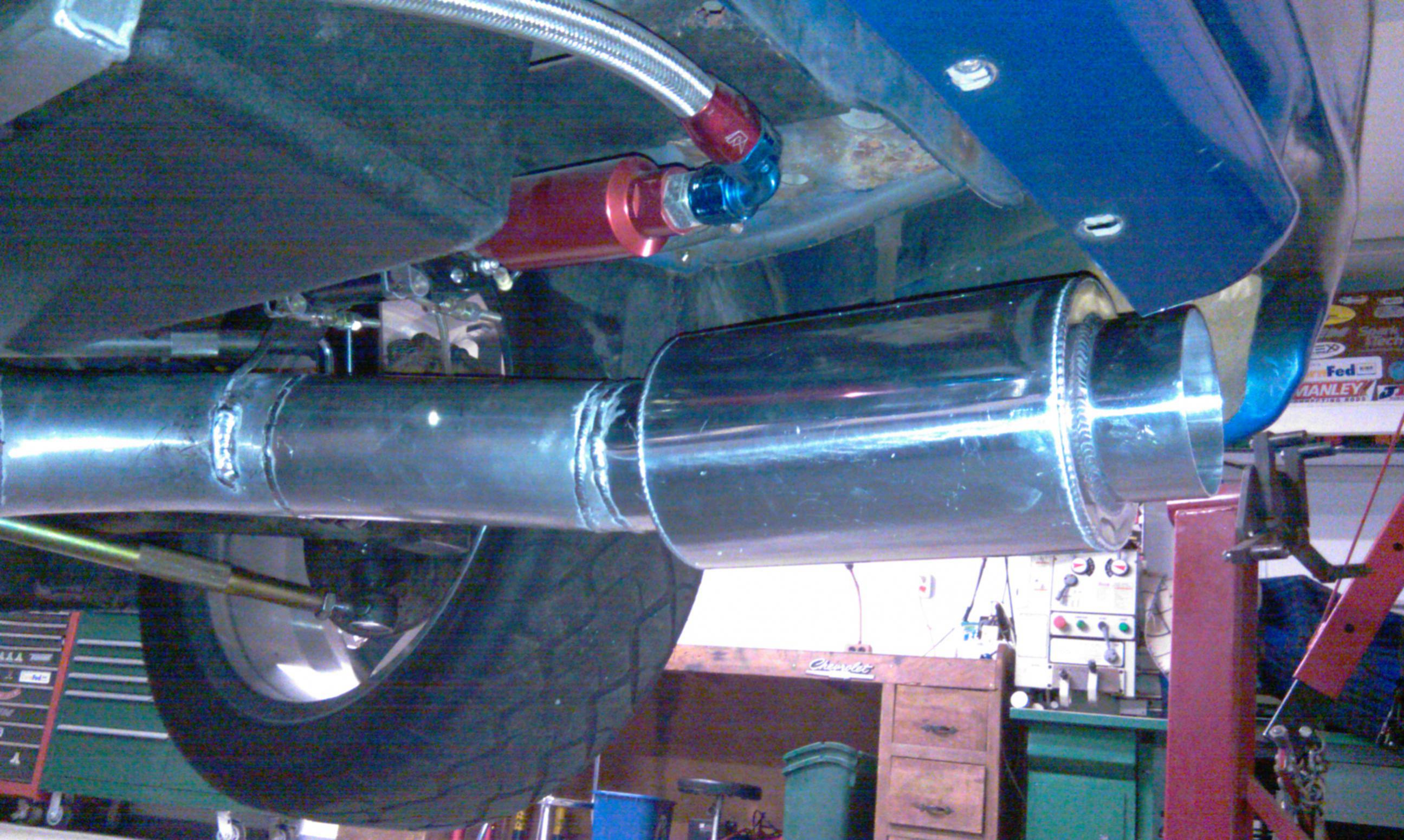 Just finished up my 4” aluminum exhaust this winter on my 1G and thought I would throw up some pictures. I want to drive the car on the street and didn’t want to do a fender dump, so this is a great alternative. It transitions over from stainless steel to aluminum at the back of the oil pan. Its 3.5” stainless from the turbo to the transition at the pan. I made the 3.5 to 4 inch transition to a v-band. It uses a vibrant aluminum muffler. The total weight of the aluminum section is around 13 lbs. I cannot wait to hear what it sounds like!