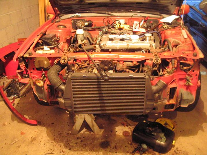 Putting an intercooler on these car is one of the hardest to route. It looks nice though. Hopefully it will be down before summer gets here. Make sure you bumper fits back on.