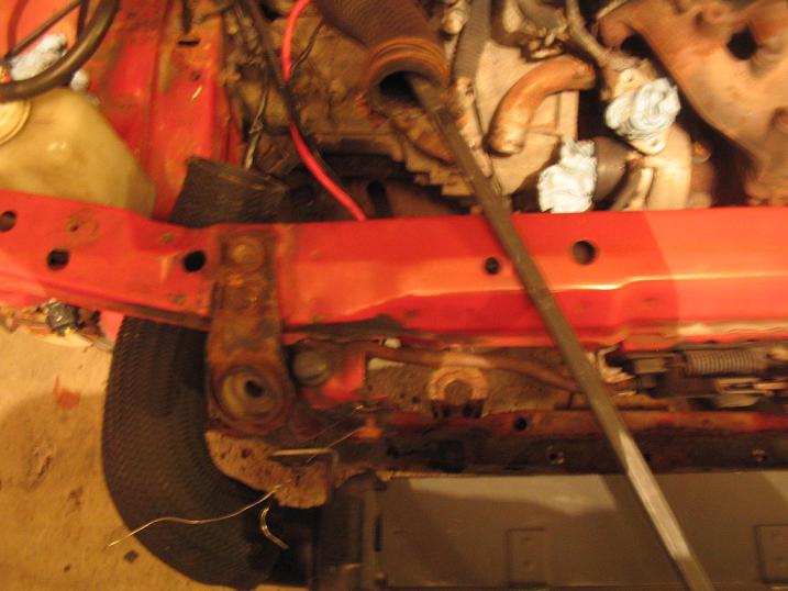 Finally got to put a couple more hours in on it today. I removed most of the power steering stuff. Got the front bumper off and ditched some more misc brackets that this thing won't need. Got the fmic mocked up. I ended up mounting it upside down, because I like how the pipes will run better that way.