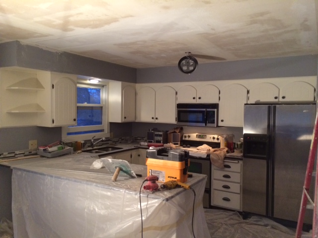 Everythings been sanded. Knock down applied to ceiling. First coat of paint up. Super Bowl is days away, gunna be close! SB party still happening whether it's done or not though!!