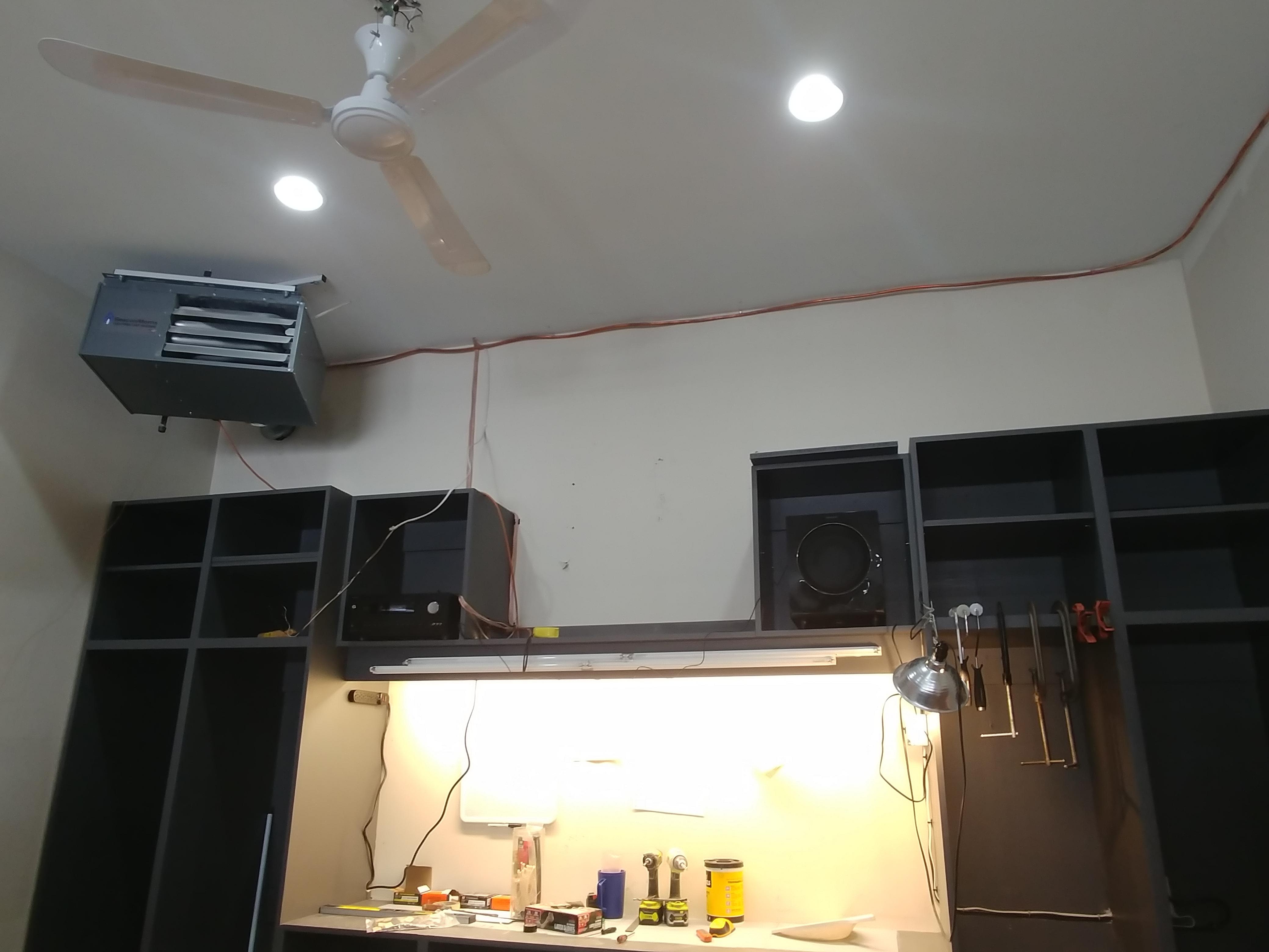 Been working on electrical lately. I have power strips mounted. I have the t5 fixtures mounted. One underneath to light up the work bench surface, and one mounted to shine towards the car for imoroved under hood lighting. Each on their own switch. Still buttoning up that wiring. Also i bought 4 in ceiling soeaker from monoprice ($35/pr). Have our downstairs receiver land sub out therr for testing out. I also bought a used 8" 150w sub off ebay (same as the one im testing out). Hopefully get these ceiling speakers mounted and wired soon. I can fit a max 43" flat screen on the shelf, so im just keeping an eye out for some kinda smokin open box deal at best buy for a 40-43" smart tv (hoping for something around $150).