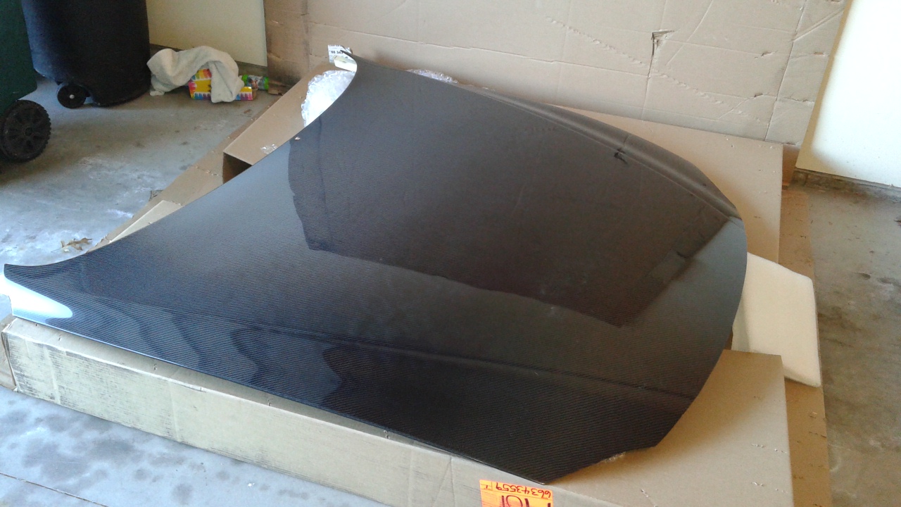 I purchased a CF hood from Advan. Stock hood weighs around 60-65lbs. New hood weighs 25lbs. Yet to get it installed, but soon!