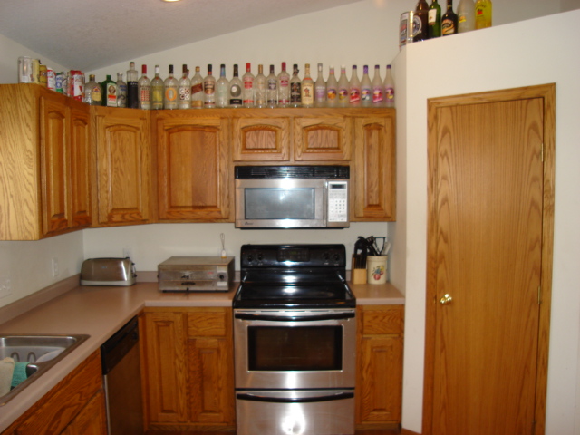 Also for anyone else interested, Menards is selling light fixtures for dirt cheap. I got the 13" ones. A 2-pack costs $12, so I bought two of the 2-packs. Replaced the two kitchen ones, and have yet to install the other 2 which will go in the stairway and the other one upstairs. Here's a pick of the ones in the kitchen.