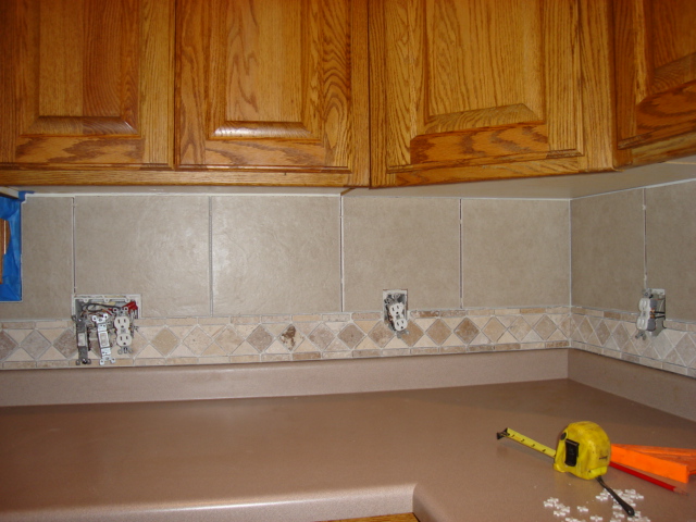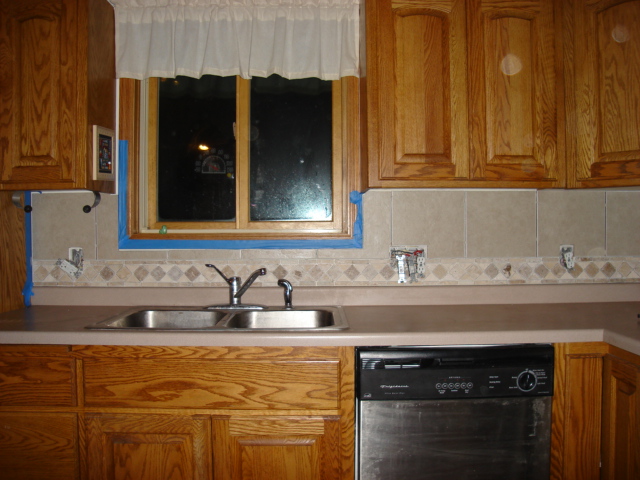 I started my Kitchen project today. I'm putting in a tile Backsplash around the whole kitchen. Here's some before Pics and some pics of my progress so far.