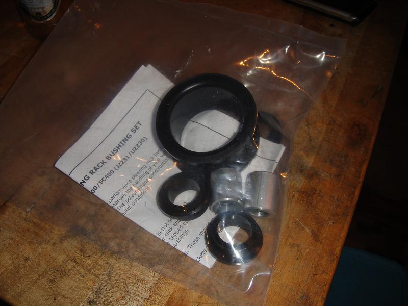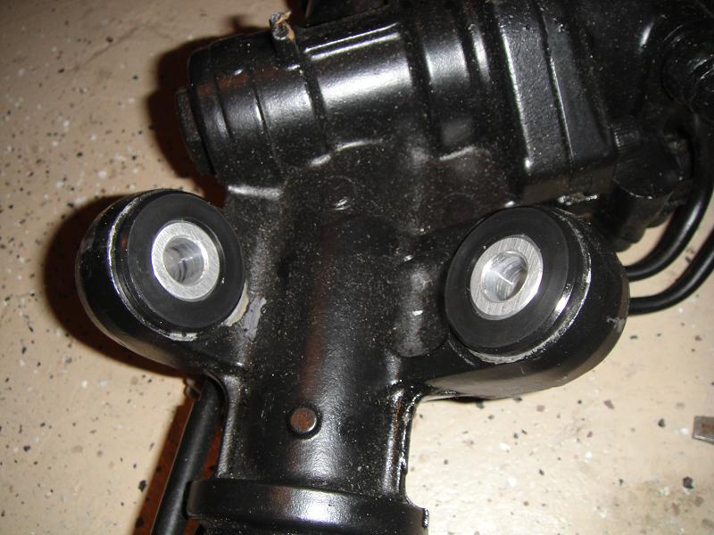 Steering rack is in with the new TME poly bushings. End links have been tightened up, and the new tie rod ends are pumped up with grease. Filled up the PS fluid and took it for a spin around the block. Car feels MUCH tighter, it was immediately noticable! I think the steering bushings are mostly to thank for that. The old ones were stock rubber, and were falling apart. I'm sure new stock rubber ones would have felt better also, but they're still rubber and have a little play. These poly ones are stiff. I love them