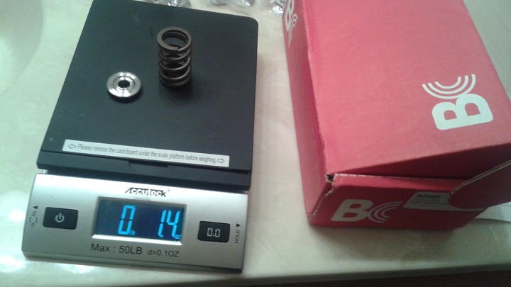 Before I sent the BC's away, I put a spring and retainer on my little scale just for curiosity. Then I just put a Manley set on the scale too. Kinda bummed because I measured the BC stuff in Ounces (didn't realize I could select grams), which isn't really as granular as grams. When weighing the Manley, I realized Grams was an option. Just kind of wanted to see how different they weighed. I'll be weighing a stock setup too once they're out. But anyway, here's the values I got for them. Oz they are a dead match, if I would have measured the BC's in grams, maybe I would have seen a tiny difference but none-the-less pretty much identical weights. Once I get the head-work started, I'm going to measure a stock set for comparison sake.
