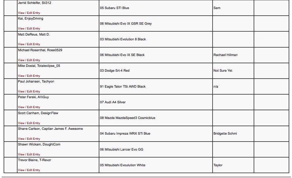 Full registration list: http://www.myautoevents.com/pls/mae/...event_id=10656