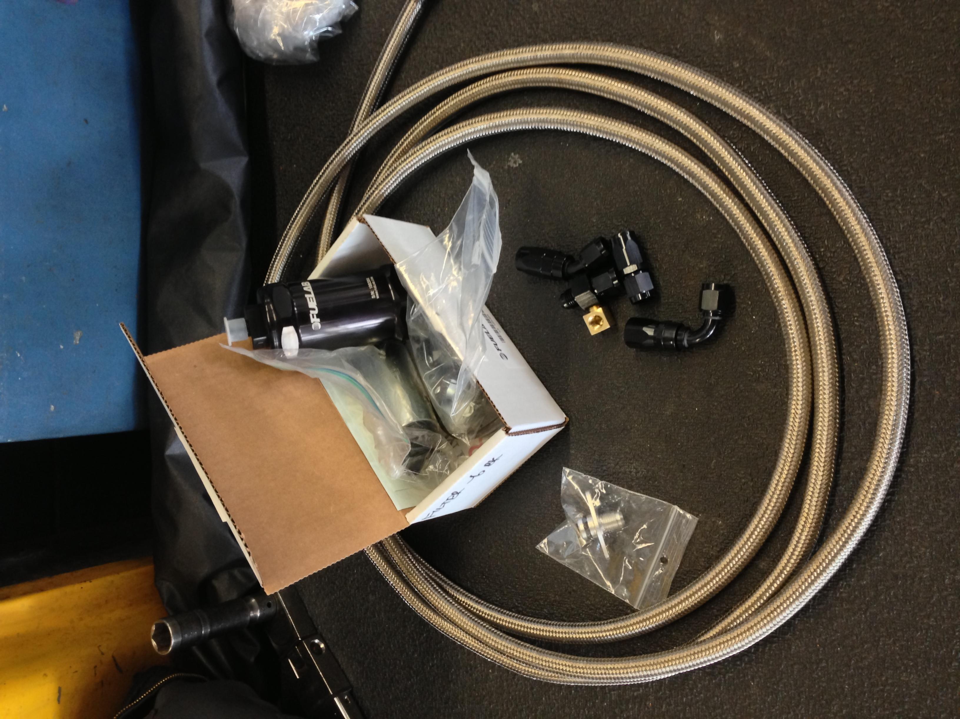 Installed braided stainless fuel line from the tank to the rail with -6an fittings and a fuelab filter today. Ill get more pics up later.