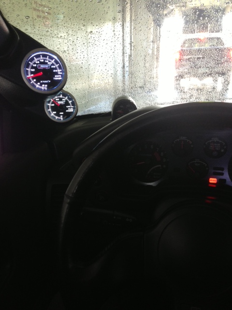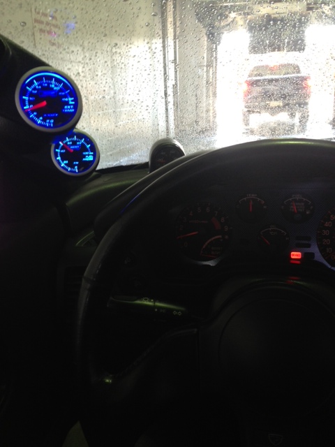 Install of the EGT gauge and sensor was a breeze thanks to a previously tapped manifold I bought from Carltalon a few months back. The fuel pressure gauge install went well too, except it reads 10psi high. I contacted prosport and ill be measuring the resistance of the sensor tomorrow to test it. I like the how the gauges are either white (daytime), or blue (nighttime). I wired them so they come on white, I hit the fog light switch to change to blue.