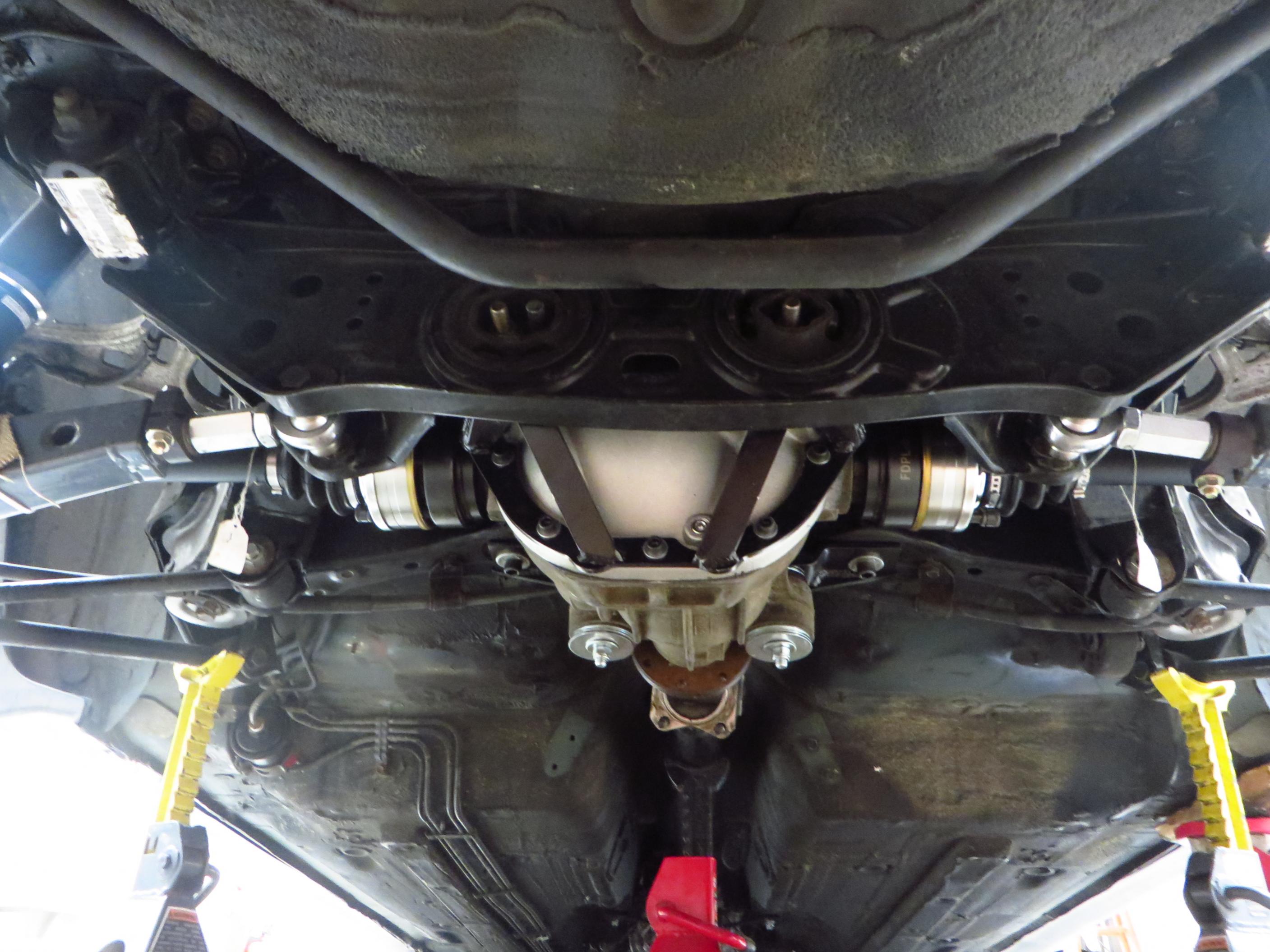 Day after that I installed the new differential and axles. Fitment of the differential was on point, took me very little time to get it mounted up into place. The fact that he used studs on the cage really made install a breeze as you just popped it up into place with the studs in the stock subframe mounting locations, and then just bolted the front mount. Literally took 15 minutes. I opted for the bolt in DSS Level 5 axles. They include stubs that popped right into the differential, and the axle shafts fit right into the stock hubs and bolt up to the stubs quite easily. All in all I'd say this was as easy, maybe even slightly easier due to the use of studs, to install compared to installing the OEM setup. Really incredible how bolt-in of a setup it is.