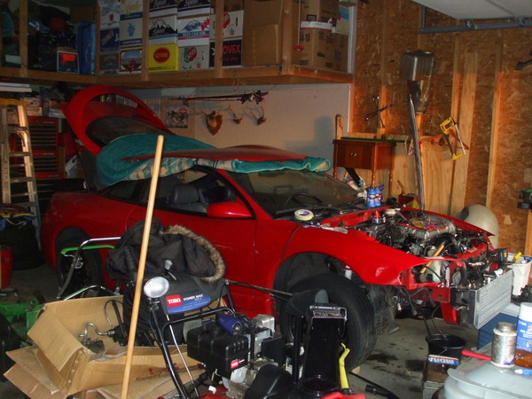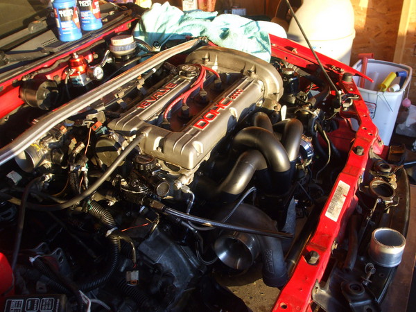 I'm just waiting for my radiator that I dropped off at Primo to get the outlet rewelded in the 1g location to get it off my exhaust manifold. Also need some trottle body gaskets then just hook up the intercooler pipes and I think I'm about ready to start her up! I still need exhaust work done but I have the downpipe on it atleast. Little things hear and there but it will be enough to start it up