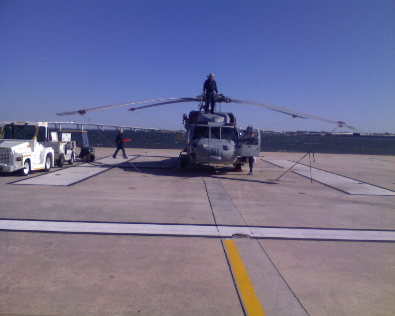 So Im doing in panama city, flordia for like the next 8 weeks for testing some stuff. Well needless to say testing leads to problems. And heres a Vid of one of our birds flying back with 285 ft of cable haning down and a thousand pound sonar swinging in the air. What it is, is a MH-60s The Same Airframe as a Blackhawk but these are Grey and i think have different engines.. Sorry I took the vid with my phone and I was inside the cabin of an other bird.