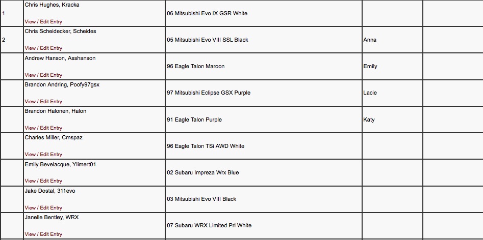 The reason we chose to use MyAutoEvents is because they take care of the registration list and after the end they just mail us a check of all the registration fees. This gives Scheides and I more time to worry about fun stuff rather than the tedious administration stuff. We're considering using the same system for dyno-days in the future. Basically, we're tired of running around chasing down people to get their money. As for the cash questions, I would prefer if everyone would just pay/register online to keep stuff organized. Yes, we did have a surplus last fall with the $5 entry fee, but that surplus was about $3 (I'm not kidding) and no route test-drives were needed since I knew the Duluth area well. Also, it sure would be nice if we could raise a little cash to help buy some cool prizes for the dyno-days and also so Scheides isn't out of pocket thousands of dollars every year hosting this website.