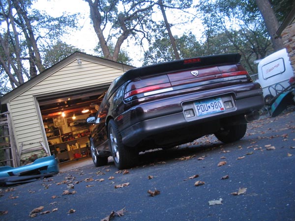 And to answer your question Hughes, yes I'm getting the car painted. Same color, just going to lose the silver bottom. So I suppose the paint will look similar to Shep's car. But I'm leaving the 91 spoiler on there, and am debating whether to get that and the roof done in black, or do it all the Black Cherry color. Here's a pic of another person who did the conversion and left the 91 spoiler on. I think it looks sick!!