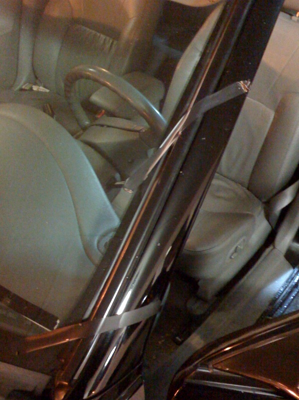 That tape is holding down my molding that popped off a while ago. If I'm going fast enough, it whistles. Its like a whistletip. Woooo Wooooooo! |