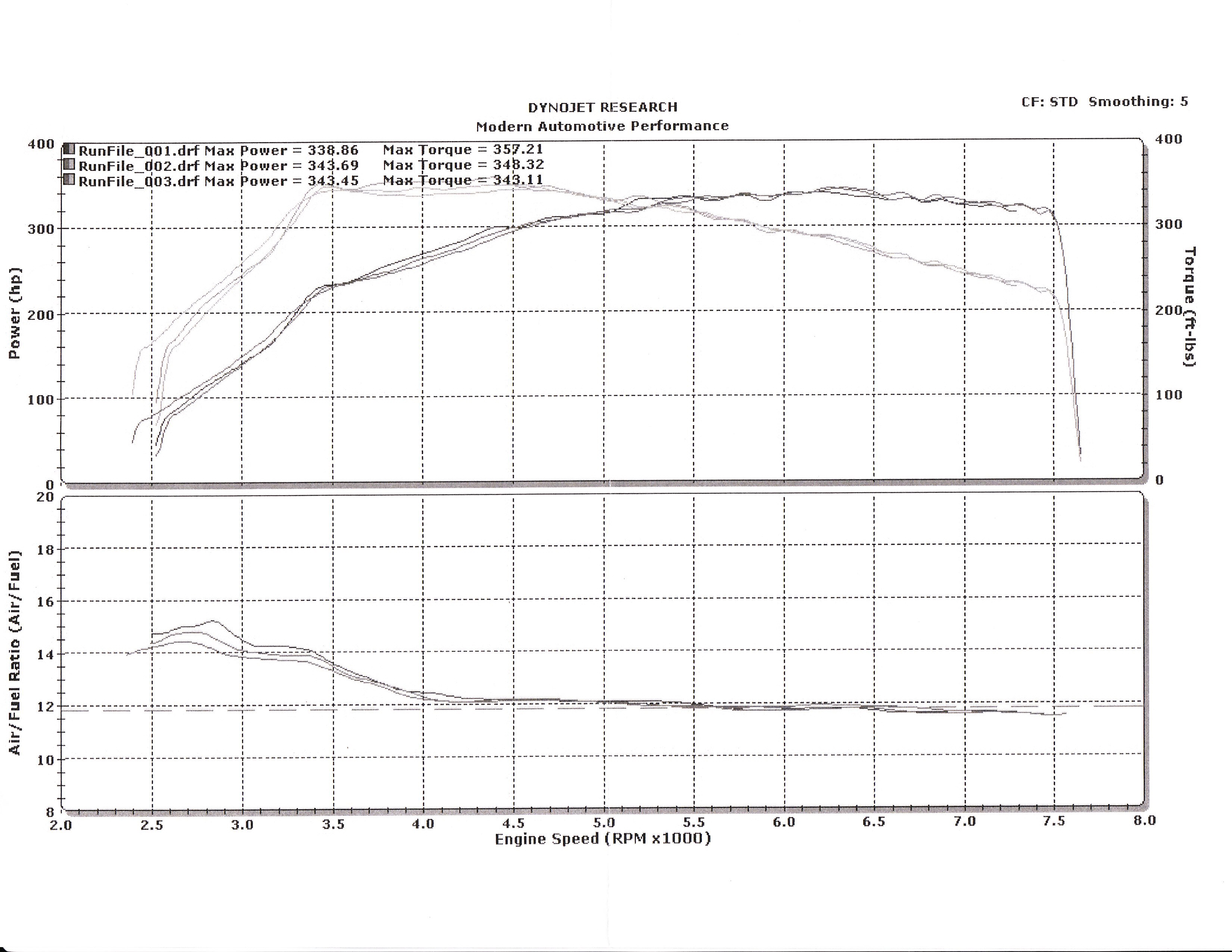 MAP=340whp RS= 323whp DB=285whp Add in some weather/wear fudge factors but this is pretty neat comparo. |