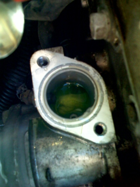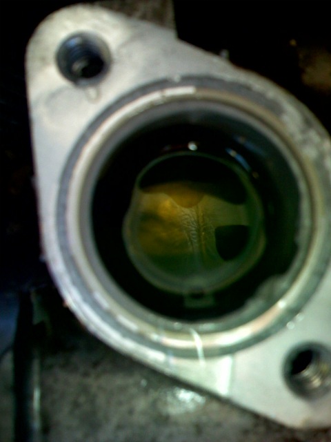 Anyway, took off the upper radiator hose and couldn't find the thermostat, maybe the previous owner took it off? Where is it at on a 2g? Here are some pics, looks like there is a decent amount of gray RTV on both surfaces. So should I put it back together with a gasket and make sure the water is flowing? I'm really a noob to all of this, any help is greatly appreciated.