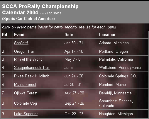 2004 Pro Rally Schedule