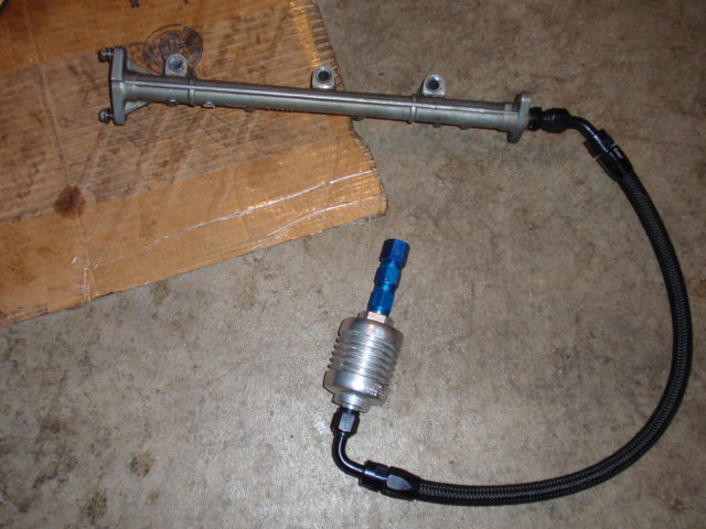 Golan -6 fuel filter and -6AN nylon braided fuel feed, stock 1G fuel rail with AN fitting attached for feedline, and fittings that allow the Golan to attach to the stock lines (see pics) - $100 - Sold