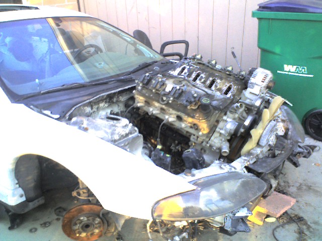 Here is my personal project, 5.3l Chevy motor in a burnt dsm....