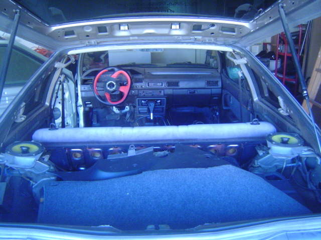 so we decided to grab some things off of it, just for the hell of it... anyways... after getting home on friday, we decided to strip it down and start doing some bodywork on it... and yes, it will remain flat black just a nicer paint job, also this weekend I finished putting a new/rebuilt bottom end in my GST that is finished and runs, and got my Base model eclipse fixed and running again... so yea i had a very buisy weekend, and i do not have school or work till wednsday this week, so i should get alot more done...