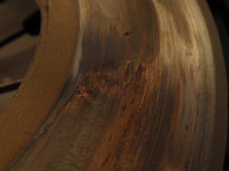 As you can see, there's lots of friction material just missing. One whole puck is missing all its friction material. And various others missing pieces of it.