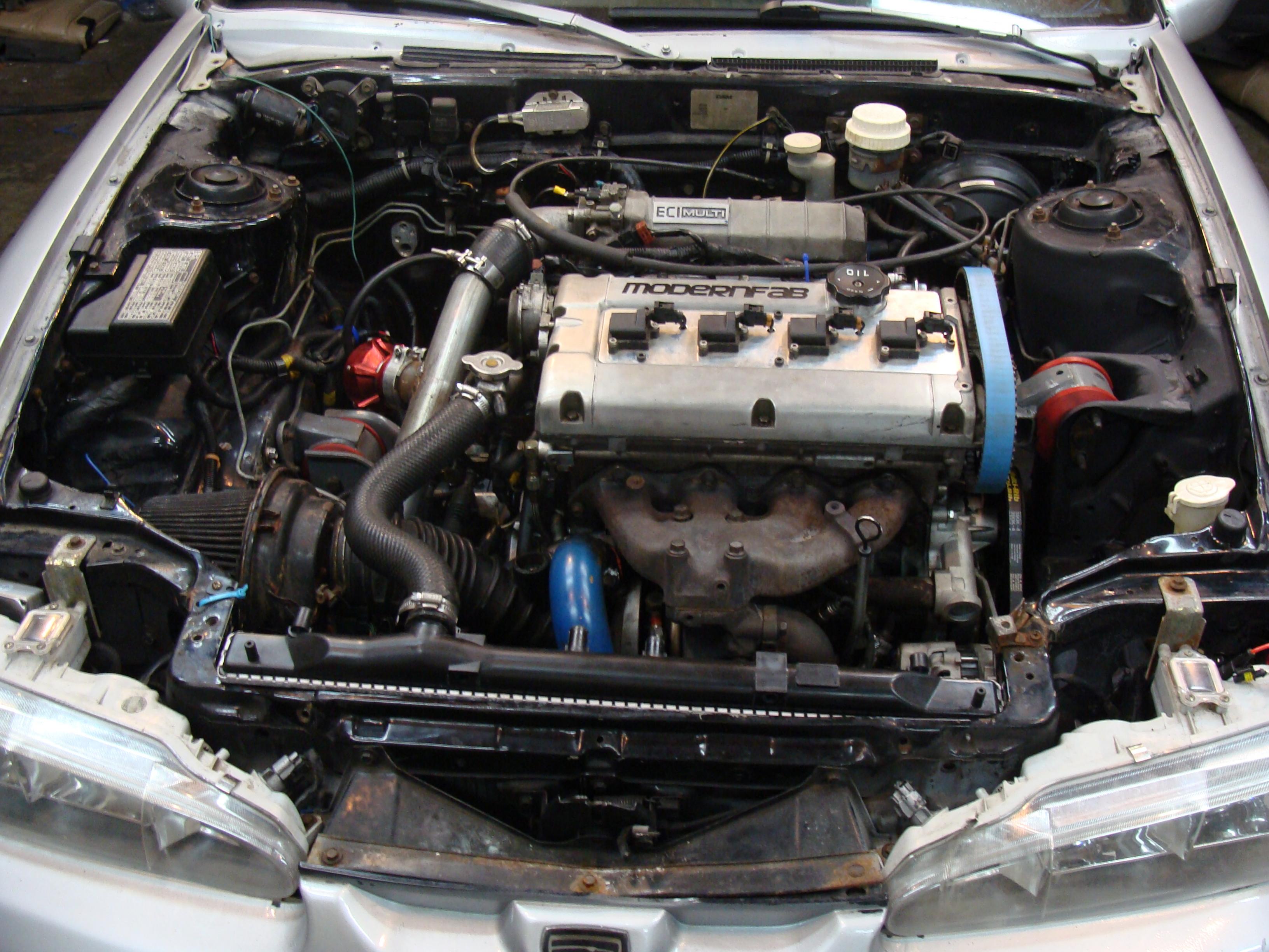 I bought the car from my buddy about 8 months ago, The car smoked bad and was a complete slug. I took it apart and replaced the motor with the motor that i had for my last car, I also replaced the turbo that was on there. When the motor was out, I pressure washed the whole engine bay and re-painted it gloss black.