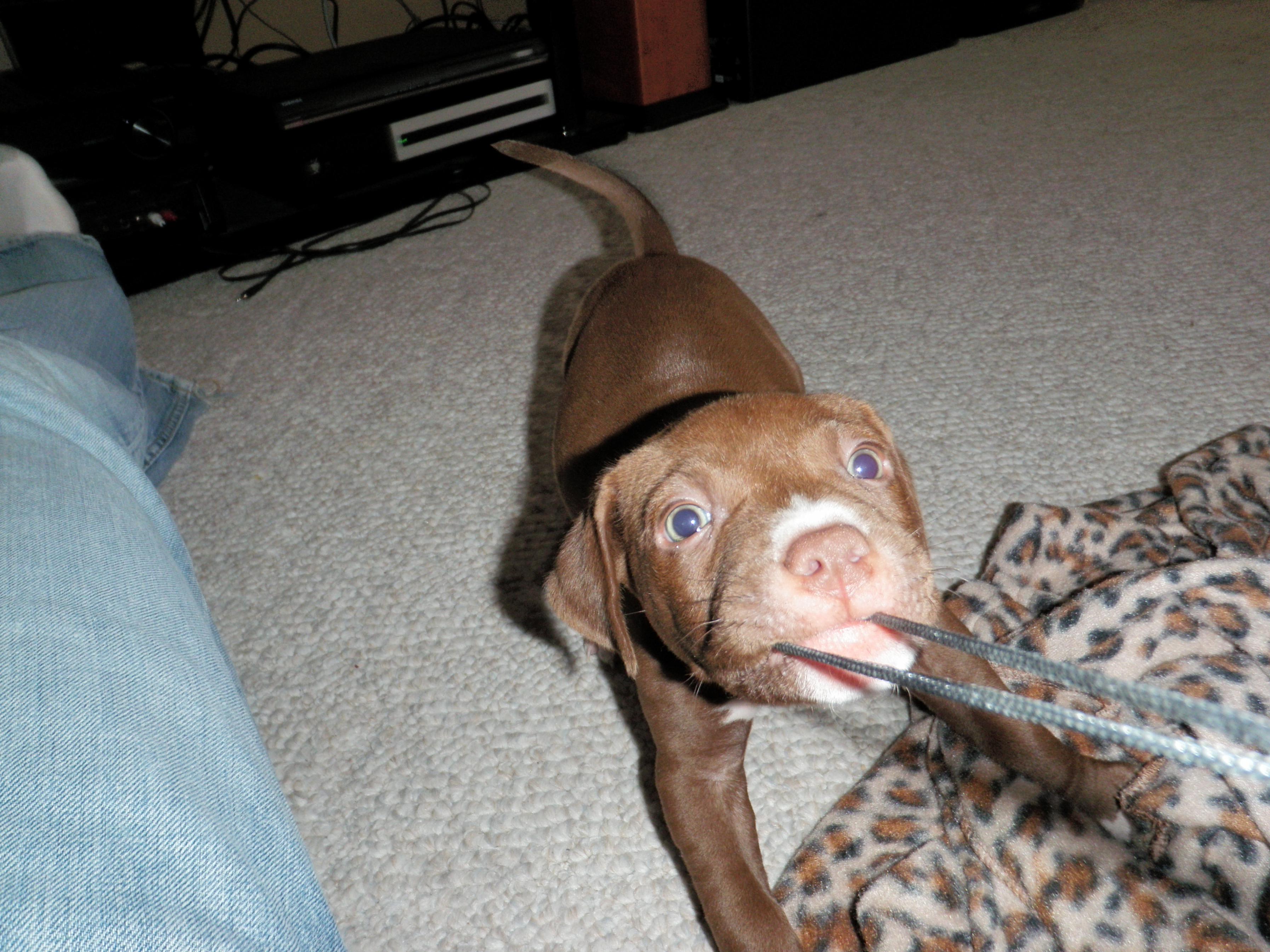 So my roommate and I picked up two Pitbull puppies. They are both 6 weeks old and are brother and sister. They are just like typical puppies eat, sleep, play and piss/s**t everywhere. Their names are Winsor and Jezza.