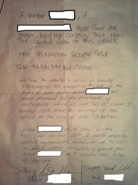 I thought cool, so we wrote up a small contract and we considered the car sold.
