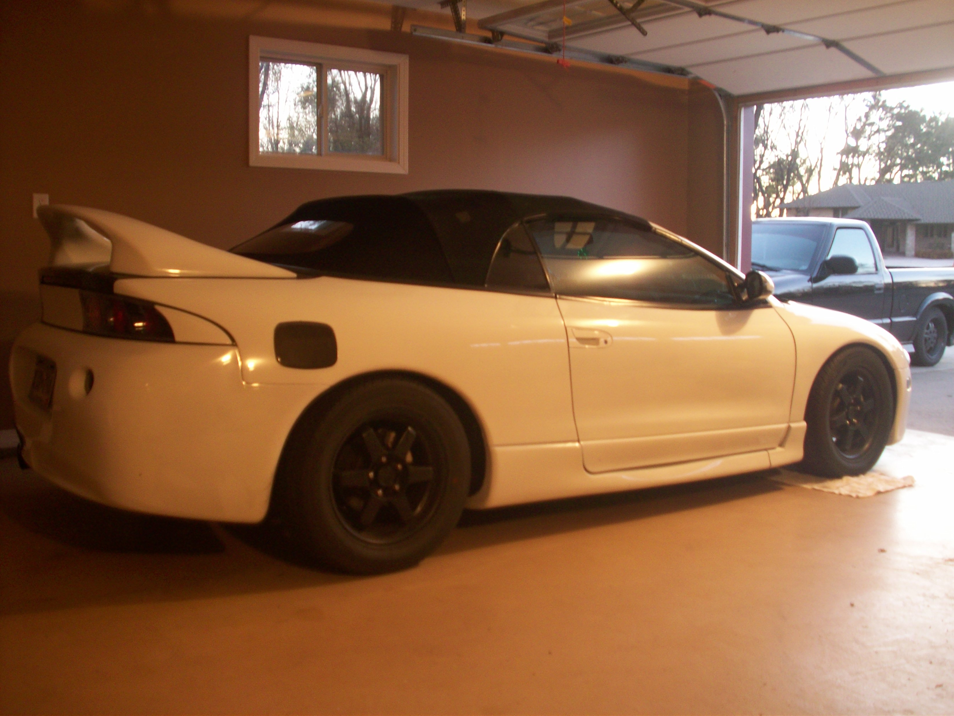 My 97 Eclipse GSX Spyder that began as a mitsu purple, 2.4L, SOHC, N/A, FWD, Automatic in 2008. It is going to be a Arctic White, AWD, 2.4L, DOHC, Turbo, Manual, with minor mods