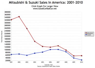 Mitsubishi's sales losses were intention. They couldn't make 100 million dollars worth of renovations to the Normal, IL plant with out shutting down production lines for the Galant, Eclipse, and Endeavor. They have planned for, and expected those numbers. Prior to this, they were the number one fastest growing brand.