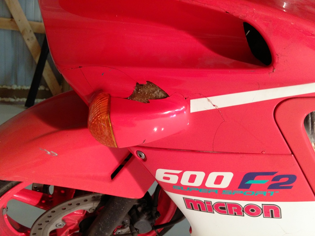 * Plastics are a little rough. Upper left faring cracked from a drop - has been reinforced with fiberglass. Picture shows damage.