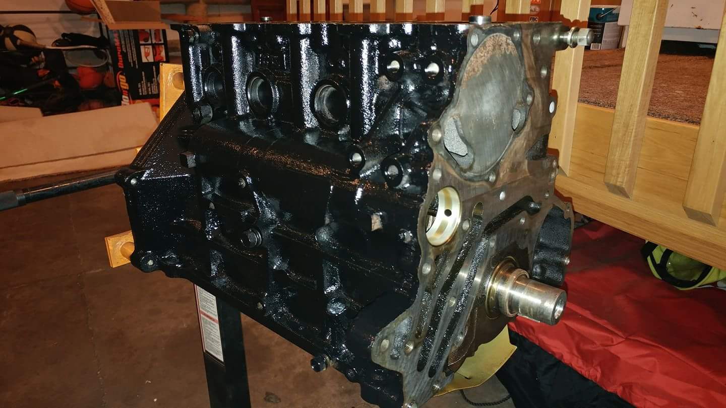 Little update. Fuel stuff is arriving today. Also last night we got her shortblock and trans painted. Next we will be getting her new front case on with a bse and then we will be able to get the head bolted on and timing done.