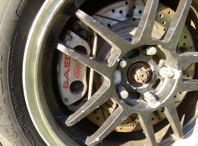 Left front tire rubs fender on hard right since car is lowered and has bigger than stock tires
