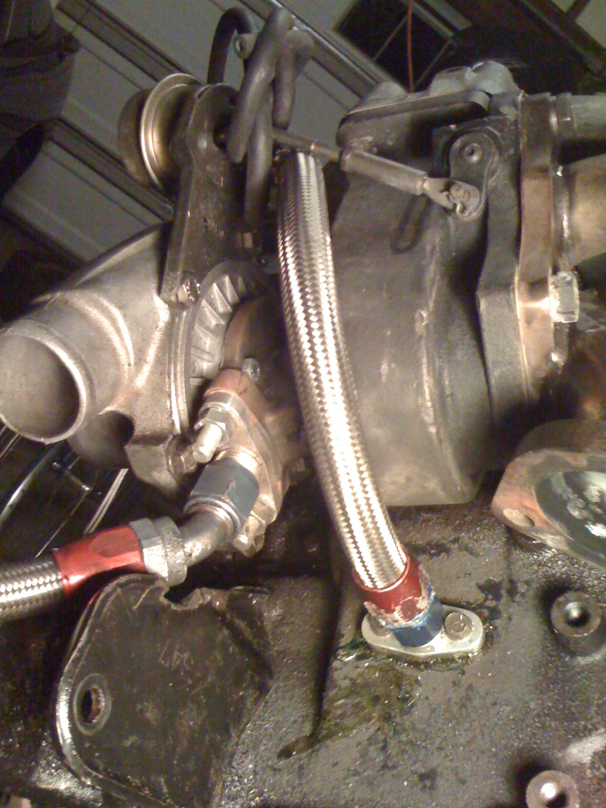 in my never-ending quest to vent crank case gasses, this is what I have done: Drilled a hole in the side of the block, and attached a -10 AN line to the side of the block, this will go to a huge catch-can. Results after the first drive.