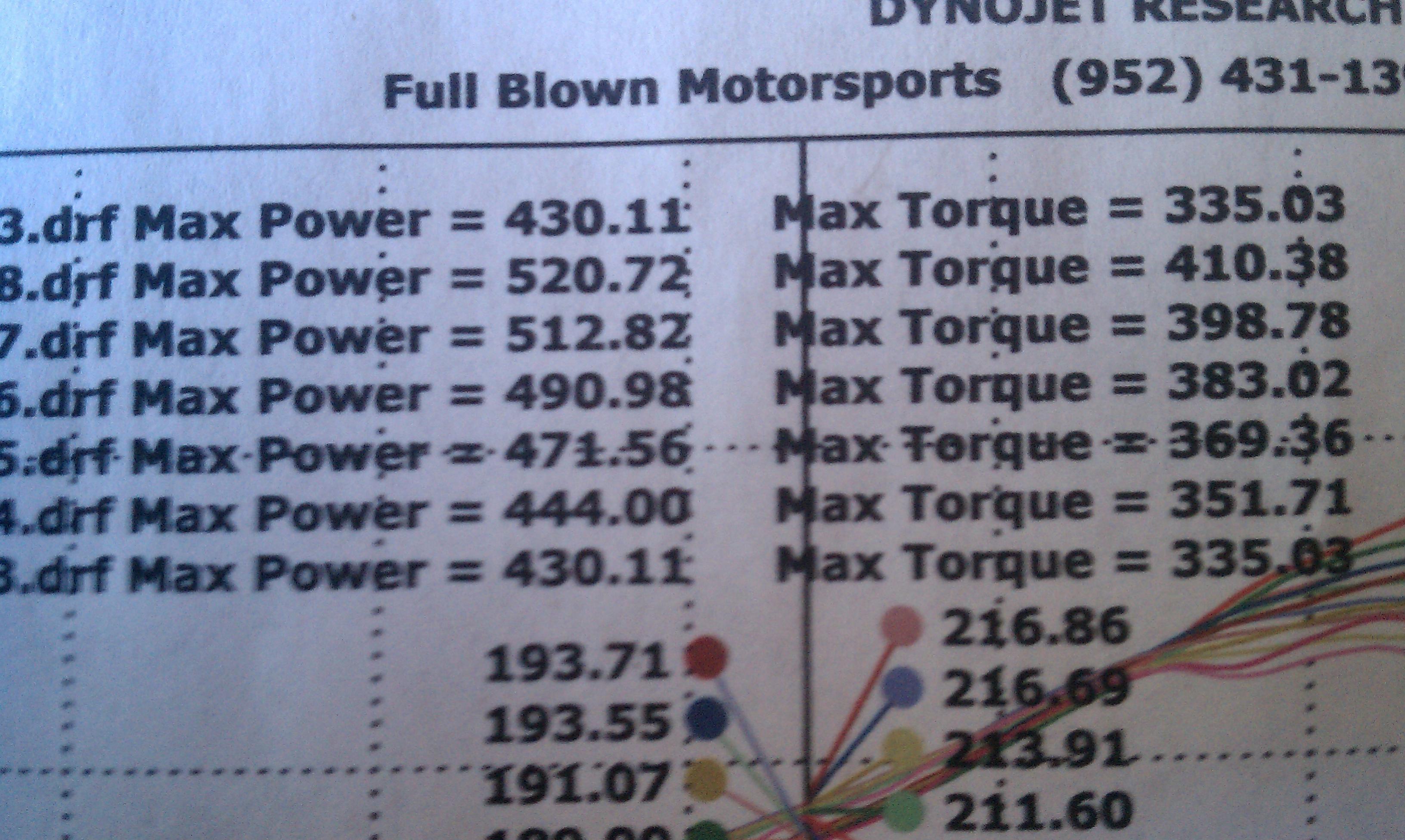 Since Ross hasnt posted his time slip I am just gonna go ahead and let everyone know he made 520hp/410ftlbs at Full Blown on 29 PSI.