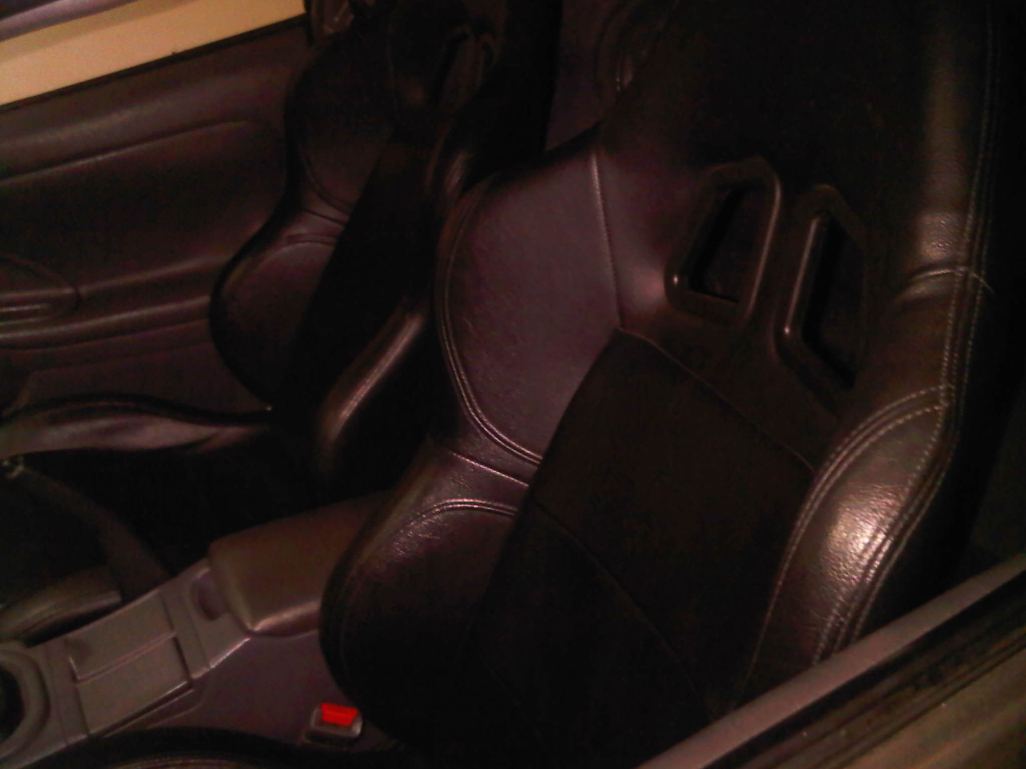 I have a pair of black leather seats with custom brackets for a 2G. I got them from a member on here and they work great. The driver side seat has a small tear in the lower bolster about half the size of a dime. The seats are actually from Jegs and they are the GS-1 high back model they retail for about $ 160.00 shipped a piece ( brackets are around $80 ). With the brackets I am looking for $ 250.00. Seats are still in the car so any buyer is welcome to test them before you buy. Only reason I am selling them is because I need seats with a lever to recline , not a crank style ( kiddo getting in and out ). Link to seats below...