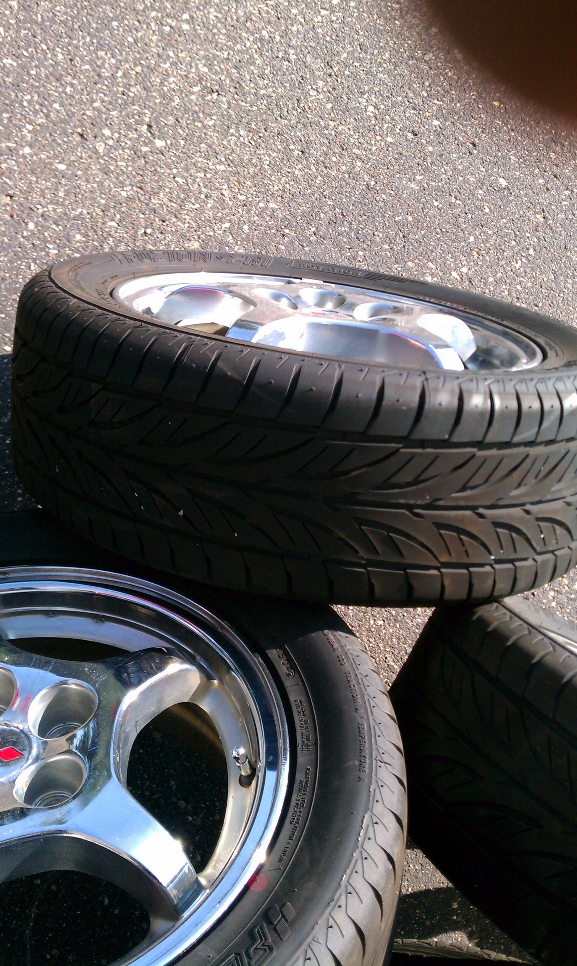 I've got a set of Chrome rims rapped with brand new Fuzion Zr.1 rubber with about 200 miles on them.
