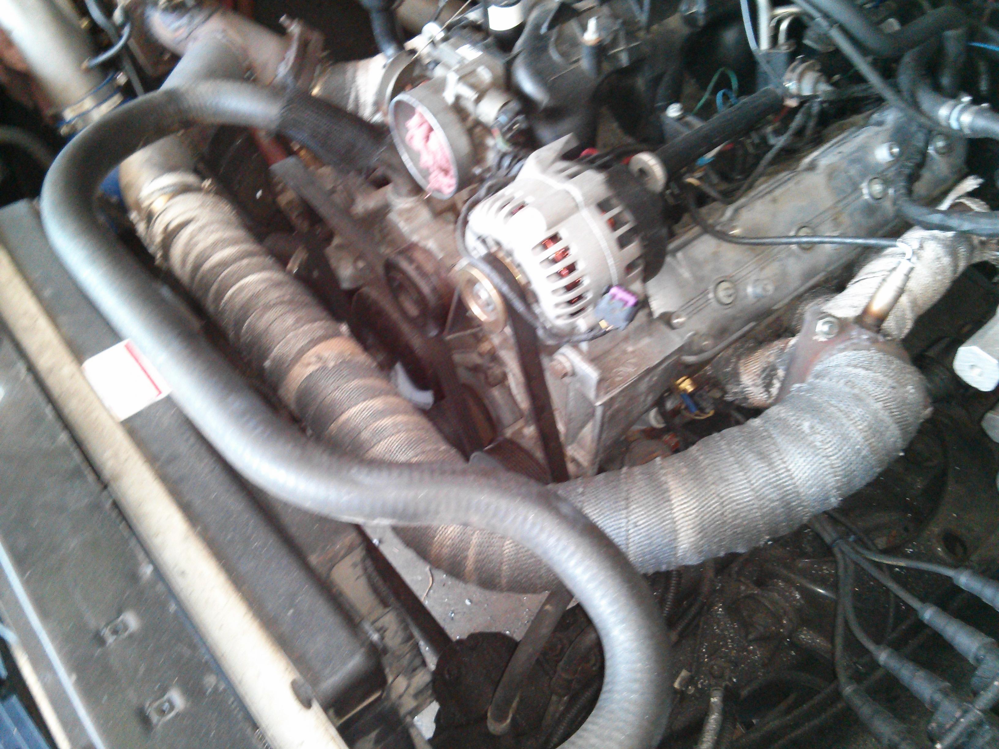Well I been busy this weekend working on the truck. I fixed the exhaust cross over pipe this weekend. It was way to close to the radiator fan and they had a flex pipe on the cross over pipe. I ran out of exhaust wipe and energy to finish it today. I have a new turbo on its way. Hopefully by the 4th of july I will have the truck up and running again.