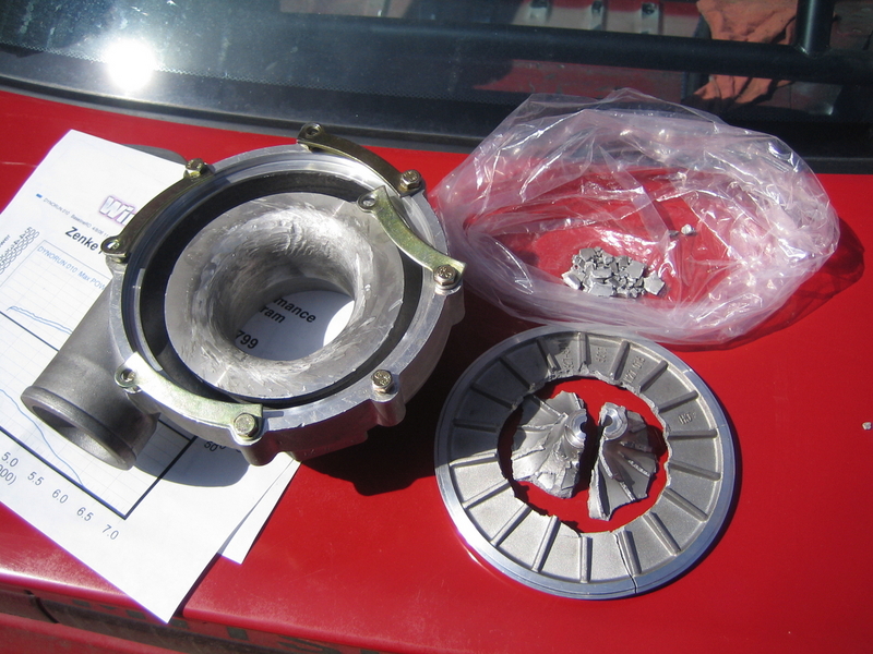Here is a video of the carnage and the dyno graph. Note: Watch the car by the passenger headlight when the RPMs really start winding up. You can see everything shift and the car move about 1/2 a foot on the dyno when the turbo went. Pretty interesting if you ask me. Talked to the guy I got the turbo from for warrenty purposes and I will have a new one in my hands by the middle/end of next week. Hopefully this doesnt happen again. I have a feeling it was a defective part.