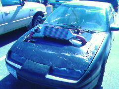 That guy has what is called an advanced sense of humor. If he has all that stuff like the afpr, safc2, wideband, he's not retarded, he just likes to make people go, "wtf?". I wanted to do something kinda like that except it would be a turbo sticking halfway out the hood, not the intercooler.