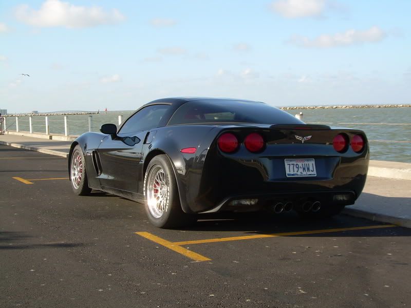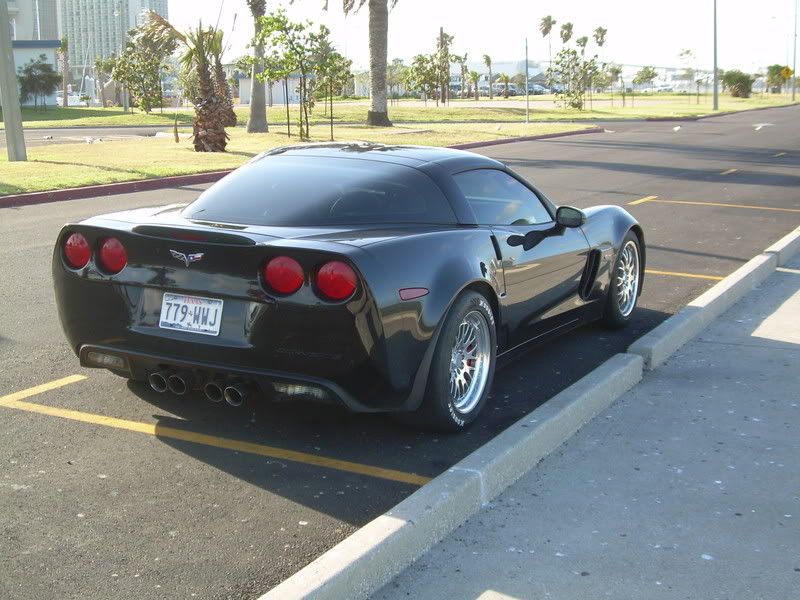 The new 335/35/17 Hoosier Drag Radials fit great on the rear 17x11 wheels. Up front it has 18x5's with Mickey Thompson Sportsman SR's 26x6's. The 18" wheel is the smallest wheel that will clear the 14" rotors and 6 piston calipers. They even drive smooth and seem to hook pretty decent, even though I haven't done a burnout or lowered the pressure yet. Today I ordered a 3.90 ring and pinion for a regular C6 rearend. I'm going to buy another rearend and modify it to bolt to my Z06 transmission. The car should fucking RIP with gears. I can't wait.